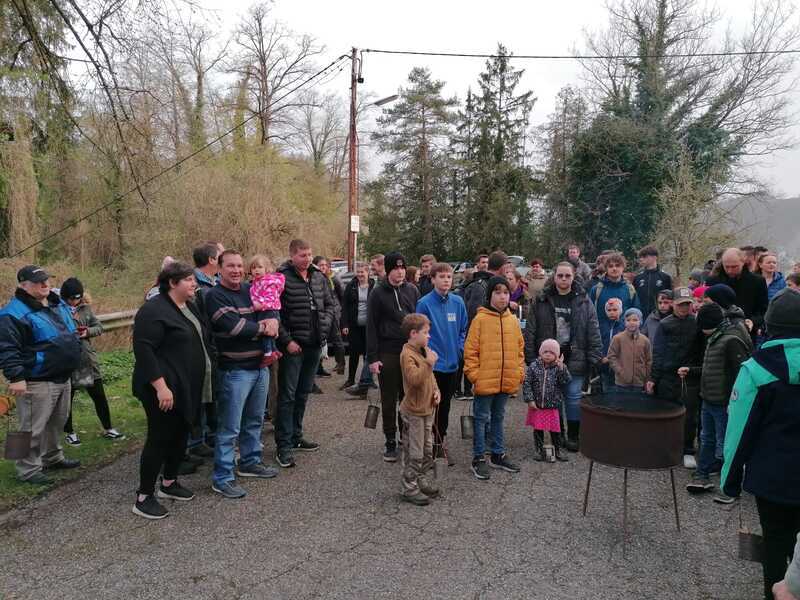 Sodann machten sich die Weihfeuerträger*innen auf den Weg, um das Feuer von Haus zu Haus zu tragen mit folgendem Spruch: