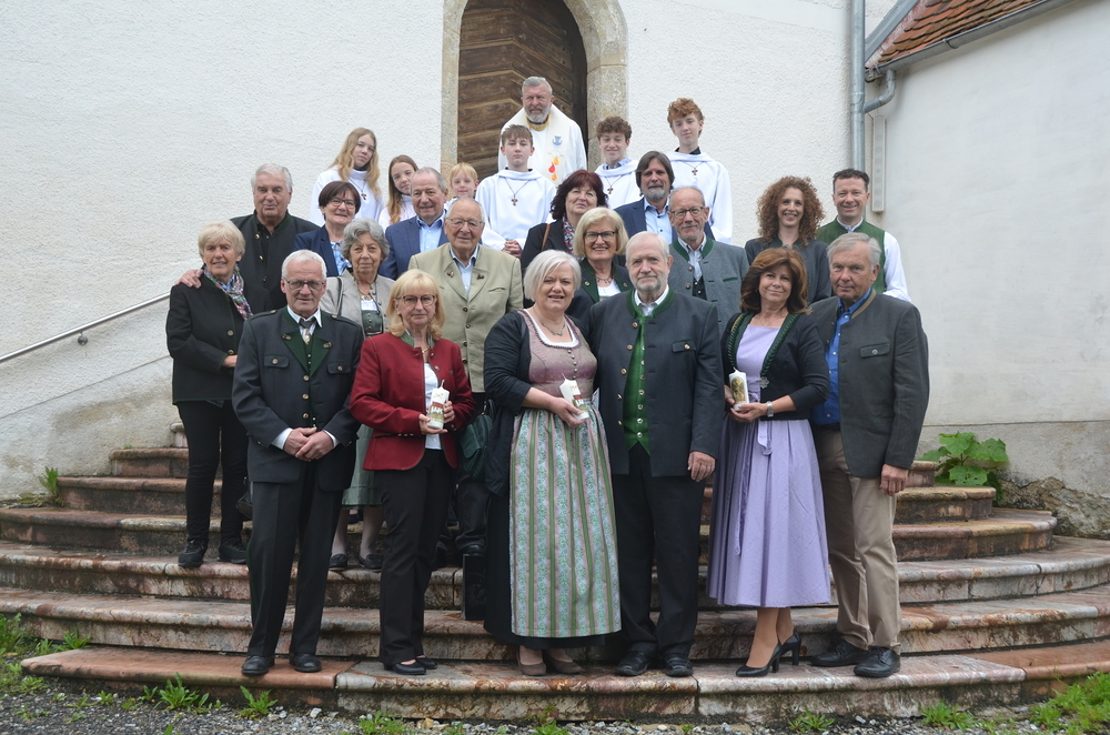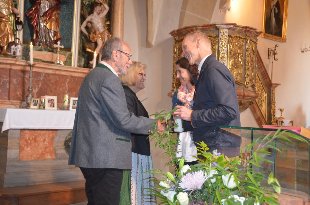 Am Ende des Gottesdienstes wurden die Paare geehrt und erhielten eine Kerze unserer Pfarre, danach eine kleine Verköstigung im Pfarrhaus.