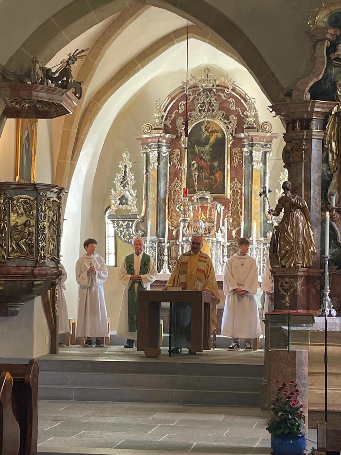 Ein herzliches Dankeschön an unseren Pfarrer Dr. Hüttel für die freundliche Begrüßung sowie an Prof. Schlacher, der die Messe mitkonzelebrierte. Nicht zuletzt ein Dank allen, die den Gottesdienst so würdevoll gestaltet und die anschließende Agape organisiert hatten.