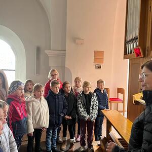Die Volksschulkinder entdecken die Orgel in der Kirche