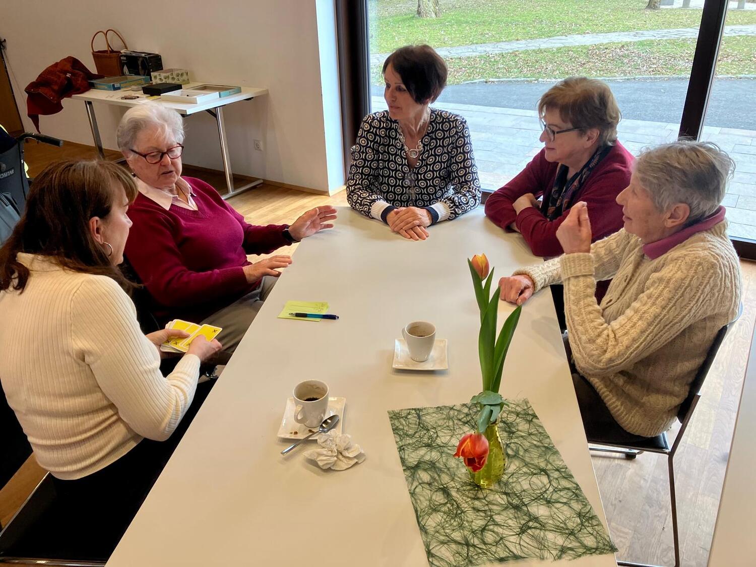 Frau Michaela Moser und Frau Susanne Schreiner überraschten die anwesenden Senioren heute mit dem Besuch einiger Kinder aus der Nachmittagsbetreuung. Der Raum war gefüllt mit lebendiger und fröhlicher Stimmung. Beim gemeinsamen Spielen mit Jung und Alt wurde viel geplaudert und gelacht. Die Kuchenteller leerten sich rasch und bei Kaffee, Wein und gesponserten Säften, waren alle Gäste bestens versorgt.