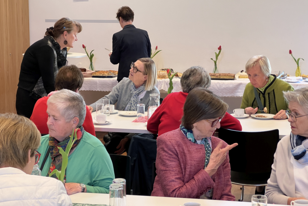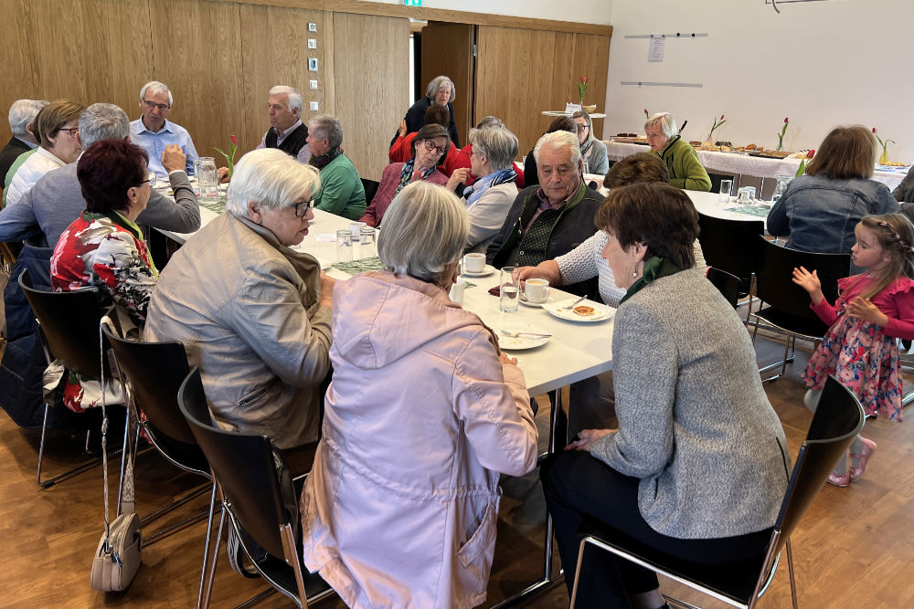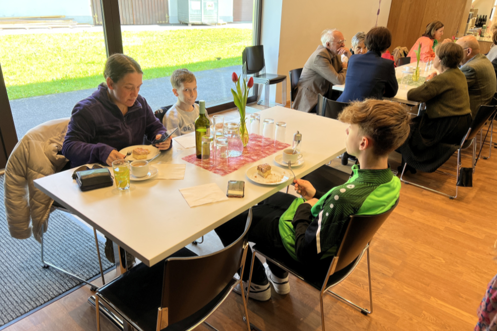 Nach der Gottesdienstfeier am 2. Ostersonntag in der Pfarrkirche folgten zahlreiche BesucherInnen der Einladung des Sozialkreises der Pfarre Gamlitz zu Kaffee und Kuchen in den Pfarrsaal. Anna Glück und ihr Team feierten ein Jubiläum: das 30. Pfarrcafe seit der Einführung vor acht Jahren. - Ein großes Kuchenangebot und fein duftender Kaffee standen bereit, im sonnendurchfluteten Saal blieb viel Zeit für persönliche Begegnungen und anregende Gespräche. – Ein herzliches „Vergelt’s Gott“ den Gästen für den freiwilligen Beitrag ins Spendenkörbchen – und dem Sozialkreis für den „kulinarischen“ Beitrag zu einem gelungenen christlichen Sonntag. (Robert Glück, 27.04.2025)
