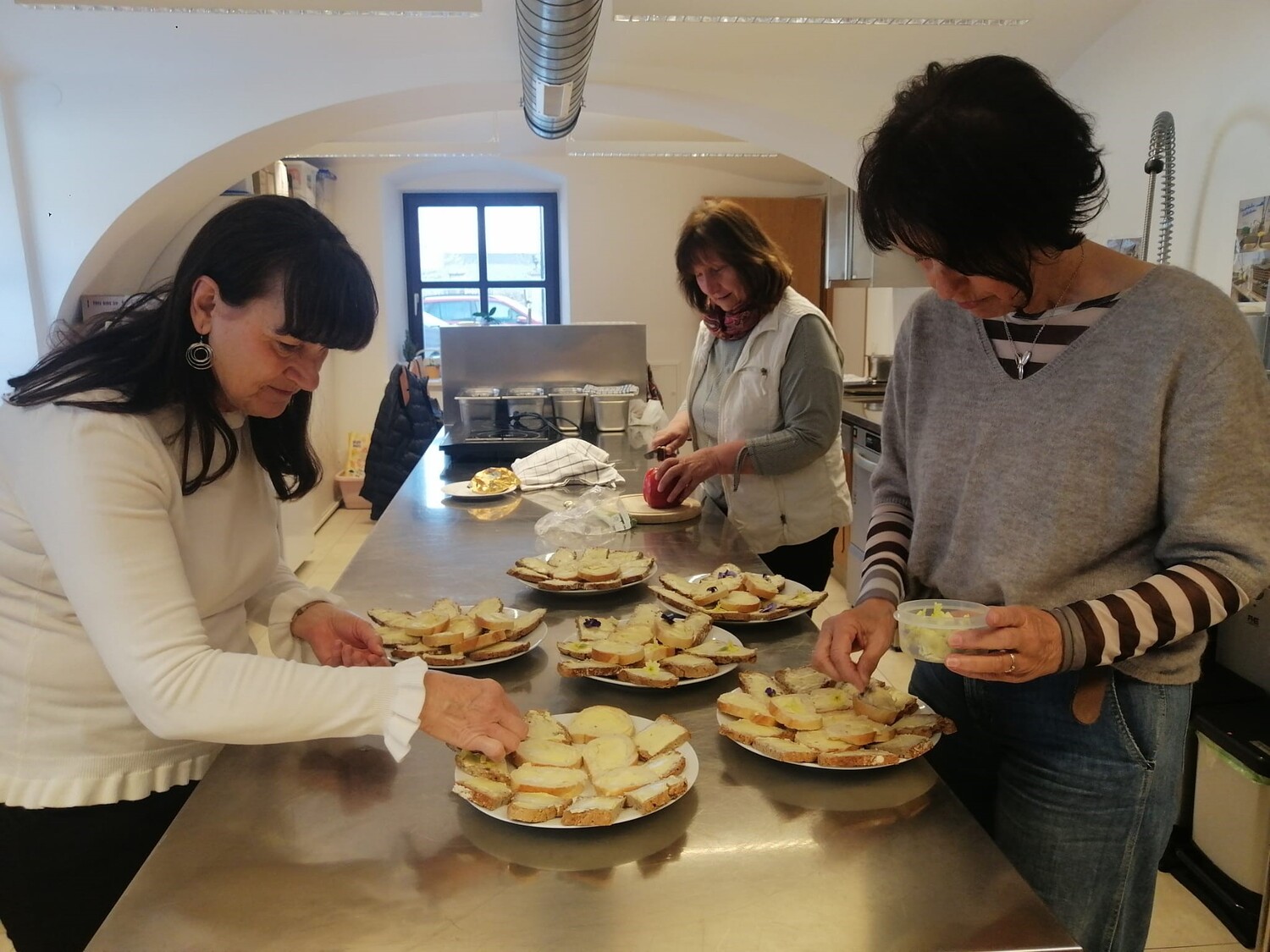 Viele schöne Gespräche und Begegnungen folgten bei guter Verpflegung. Besonders appetitlich waren die Butterbrote aus selbst gebackenem Schwarzbrot - bunt verziert mit den ersten Blüten aus Gerti´s Garten. Auch ein Glaserl Wein durfte nicht fehlen und so fand der Nachmittag einen gemütlichen Ausklang.