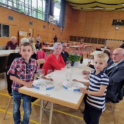Nach der wunderschön gestalteten Erstkommunion zogen die Erstkommunionkinder in die Halle um beim Start des Pfarrfests dabei zu sein. Nachdem wir letztes Jahr richtiges Wetterglück hatten, mussten wir diesmal in die Veranstaltungshalle ausweichen. Dem Wetter zum Trotz war die Stimmung sehr gut. Das Kinderprogramm war gut besucht, viele Preise wurden verlost und natürlich gab es wieder genug zu essen und zu trinken. Obwohl diesmal besonders viele Torten gebacken wurden, waren am Schluss alle weg.