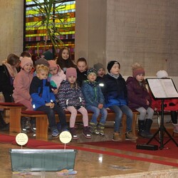 Tina Fegerl hat mit den Kindern in vielen Proben wieder ein tolles Krippenspiel einstudiert und eine besinnliche Andacht vorbereitet. Musikalisch begleitet wurde es von eine Bläsergruppe von klein bis groß.
